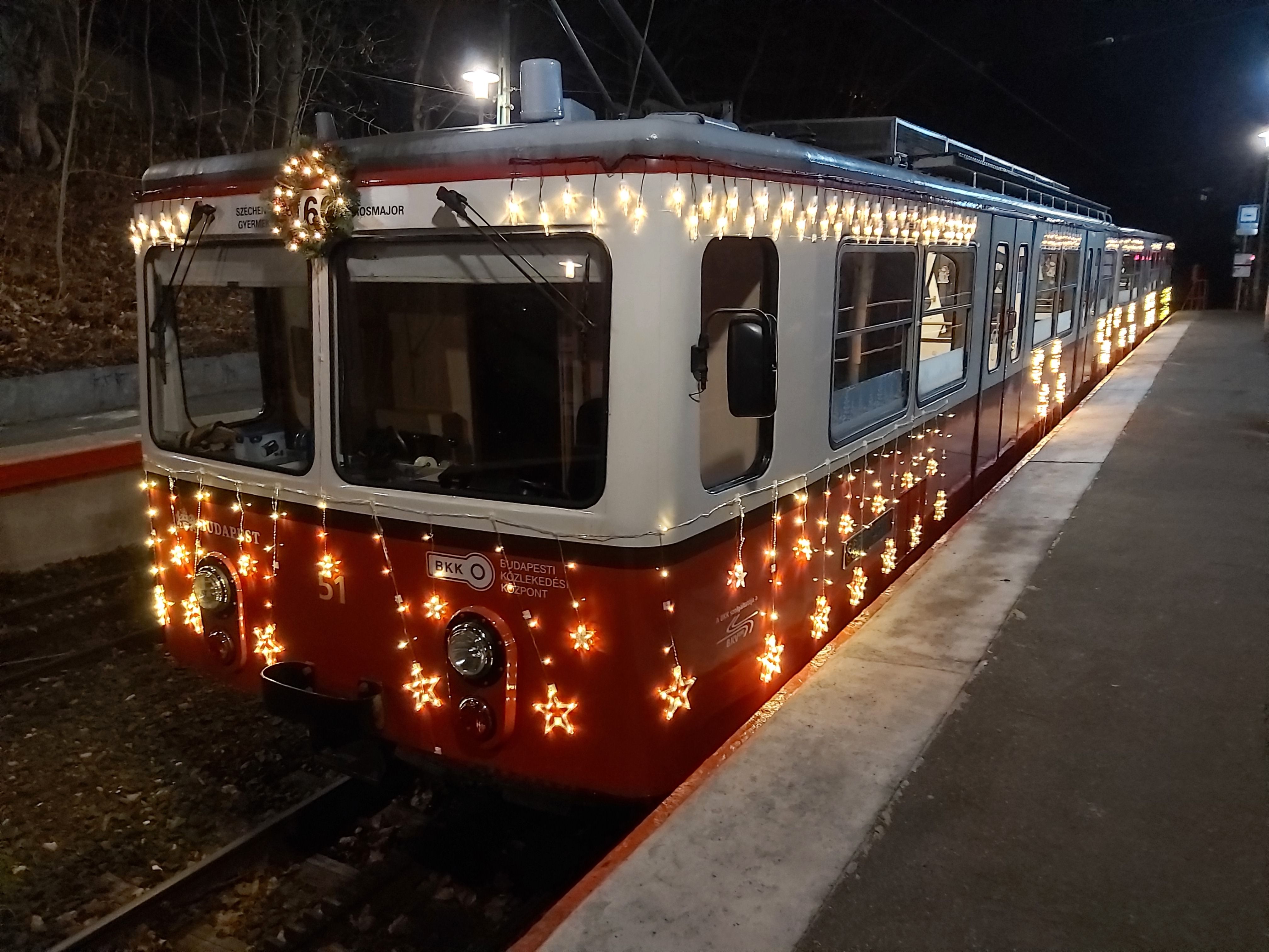 Mi szokásunkhoz híven egy különlegességet választottunk, a fényfogaskerekűt (60-as villamos). Róla közzé teszünk néhány képet is. Persze a fénynél mi jobban annak, hogy a járművet díszítés előtt hajtástechnikailag is szokatlanul alaposan rendbetették. Ez sajnos nem mondható el a szemből érkező járművekre és a menetrendre.