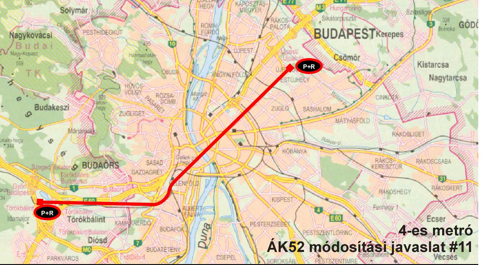 - M3 (Újpalota Pólus) P+R - Móricz Zsigmond körtér ~25perc