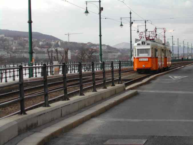 Talán azért is mert a fotós szemével az újabb típusú villamos már nem passzol a híd látványához: